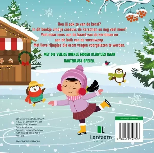 Door de voelelementen is het leuk voor de allerkleinsten om zo verschillende materialen te kunnen ontdekken. Is je kleintje al wat groter, dan kunnen ze door de voelelementen materialen gaan koppelen aan de onderwerpen (de baard van de kerstman, de buik van de sneeuwpop, de buik van het rendier etc).